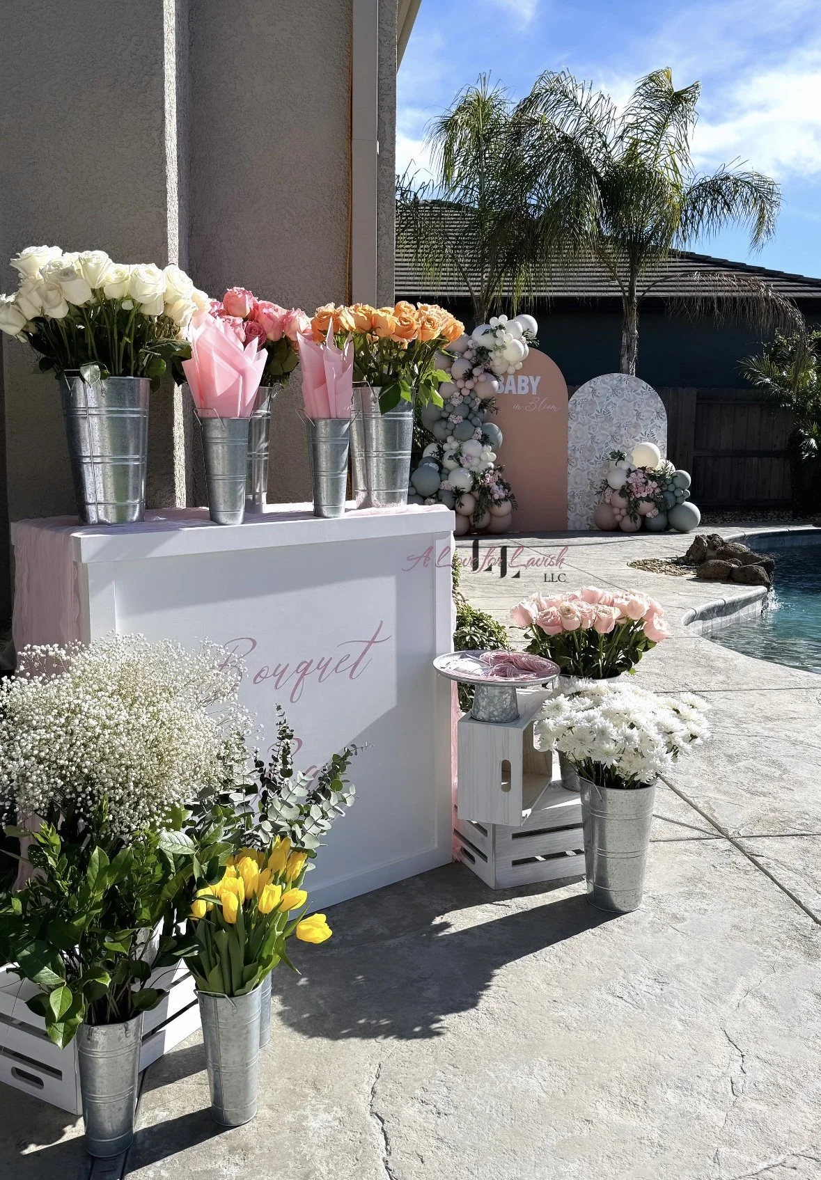 Let’s get into this unique and memorable take away for your guests. Build your own bouquets are the perfect addition to bridal and baby showers alike. “Baby in Bloom” themes are on the rise and wouldn’t be complete without the sweet smell of fresh flowers! Thank your guests in the sweetest way with our bouquet bars. Color coordinate your floral or have a beautiful array of colors to wow your guests.